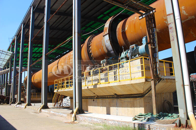 回轉(zhuǎn)窯有一定的斜度,隨著窯的不停的轉(zhuǎn)動(dòng),物料由高端向低端慢慢前進(jìn)。從窯頭噴入天然氣,在窯內(nèi)進(jìn)行燃燒,熱量被物料吸收,高溫下物料發(fā)生物理和化學(xué)變化,被煅燒成為成品,然后排出回轉(zhuǎn)窯。